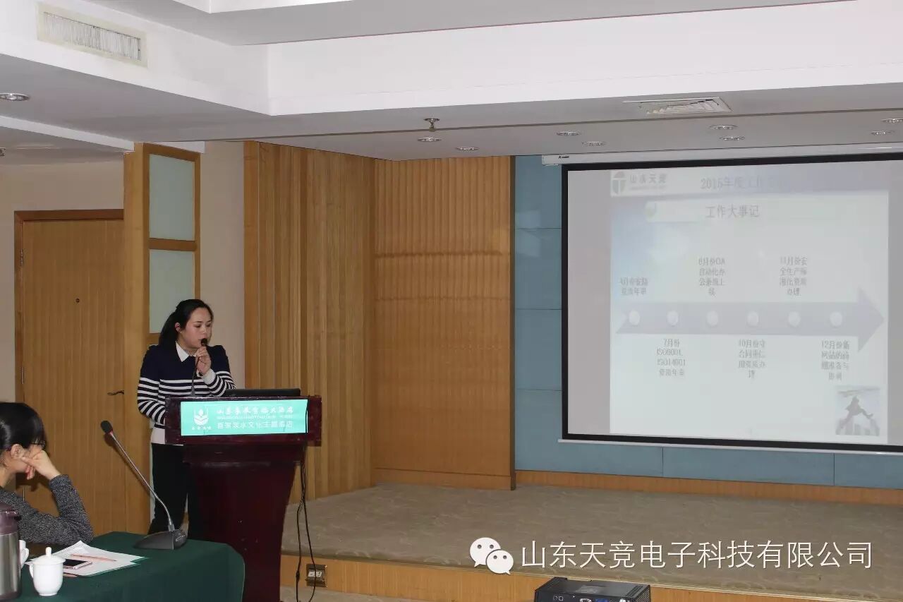 > 公司新闻欢声笑语辞旧岁,张灯结彩迎新年。2016年1月30日, 山东天竞电子科技有限公司全体员工欢聚一堂,在山东良友富临大酒店(合作伙伴)隆重召开2015年度总结大会。